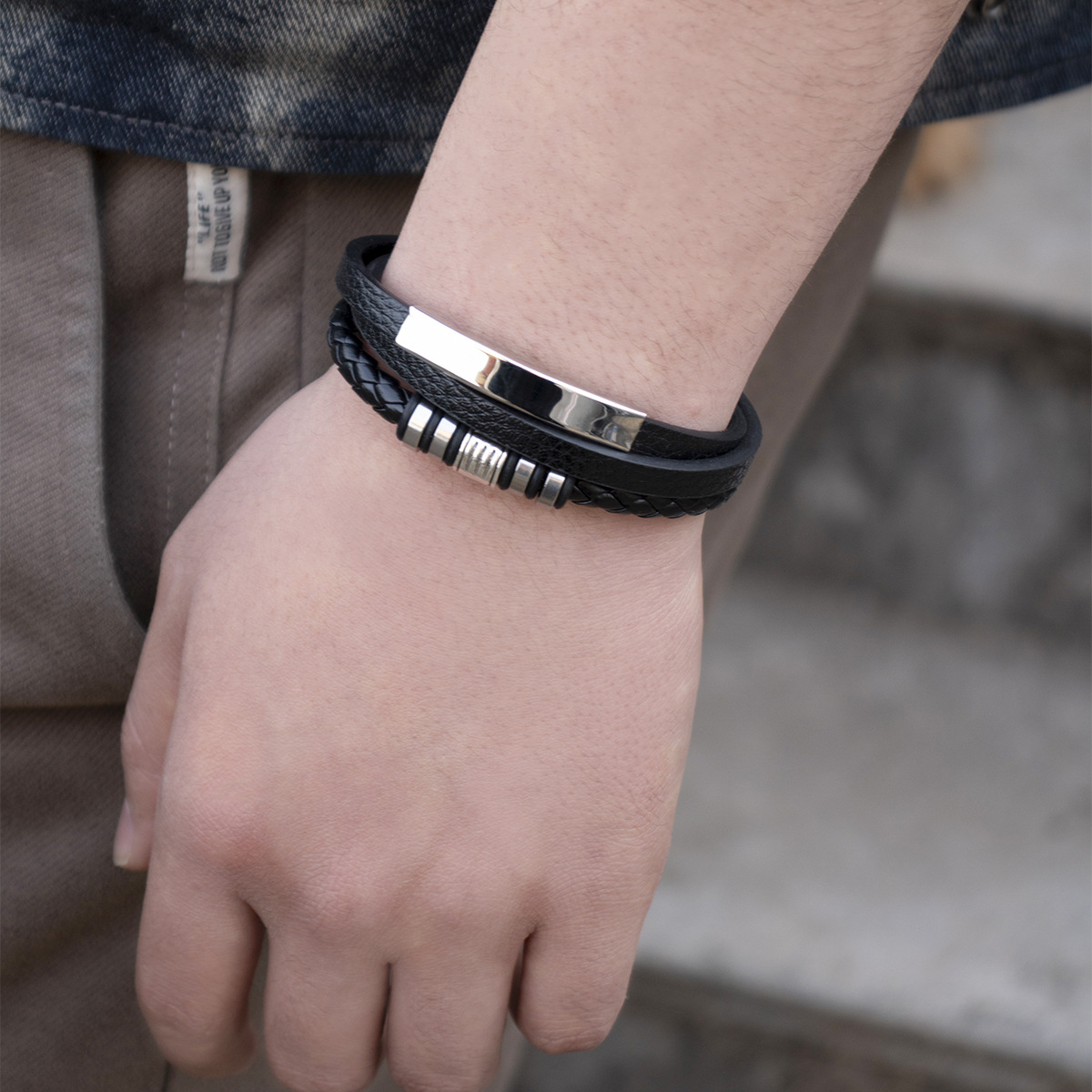 2025 Europe and the United States cross-border summer new best-selling men's folding bracelet double-layer chain simple retro everyday versatile