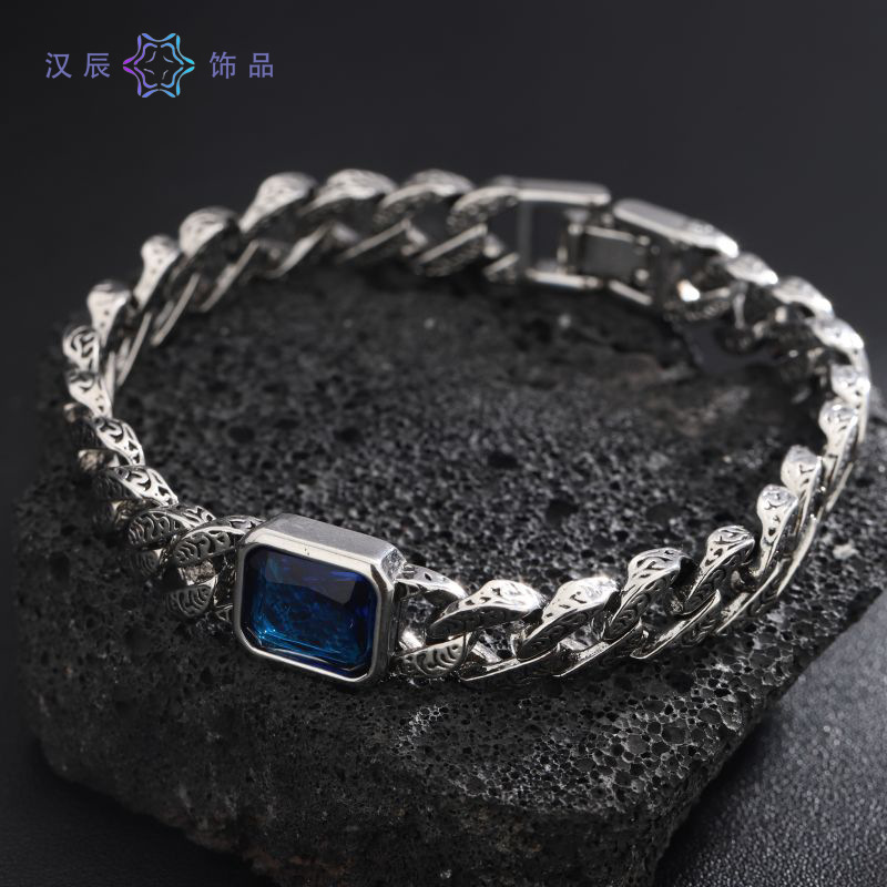 Sapphire Bracelet Men's Trendy Titanium Steel Color-free High-end All-match Cuban Accessories Women's Simple Hip-hop Jewelry Bracelet
