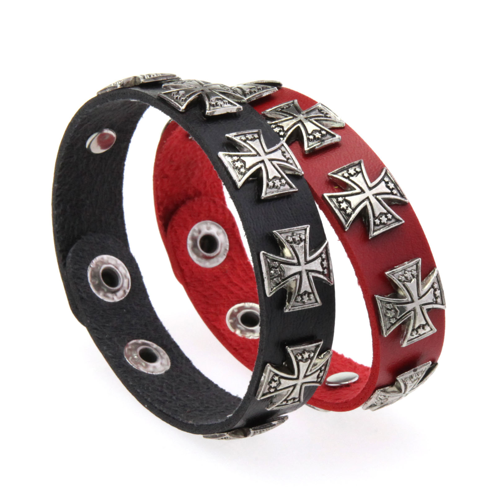 Fashion Trendy Men's Trendy Women's Personality Retro Alloy Cross Hip Hop Handring Bracelet Punk Stainless Steel Snap Buckle Bracelet