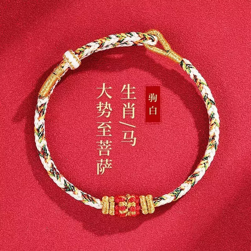 Semi-Finished Wearable Gold Bead Bracelet for the Year of the Horse, Zodiac Year, Tai Sui Red Rope Bracelet for Women, Dragon Red Bracelet for Men, None