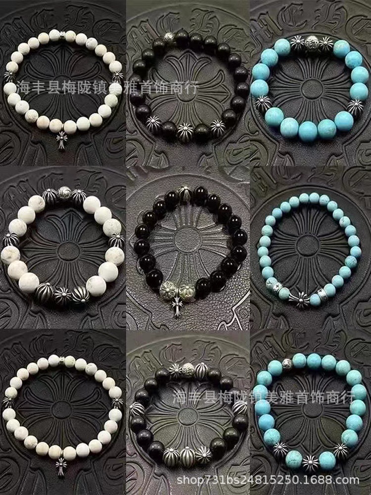 Crooshi old bracelet cross turquoise beads fashion trendy personality hip hop men's and women's cat eye Obsidian
