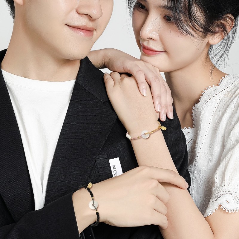 Natural Pearl White Agate Safe Buckle Hand Rope Couple's Hand Rope Female Niche Design Woven Bracelet Gift for Hair