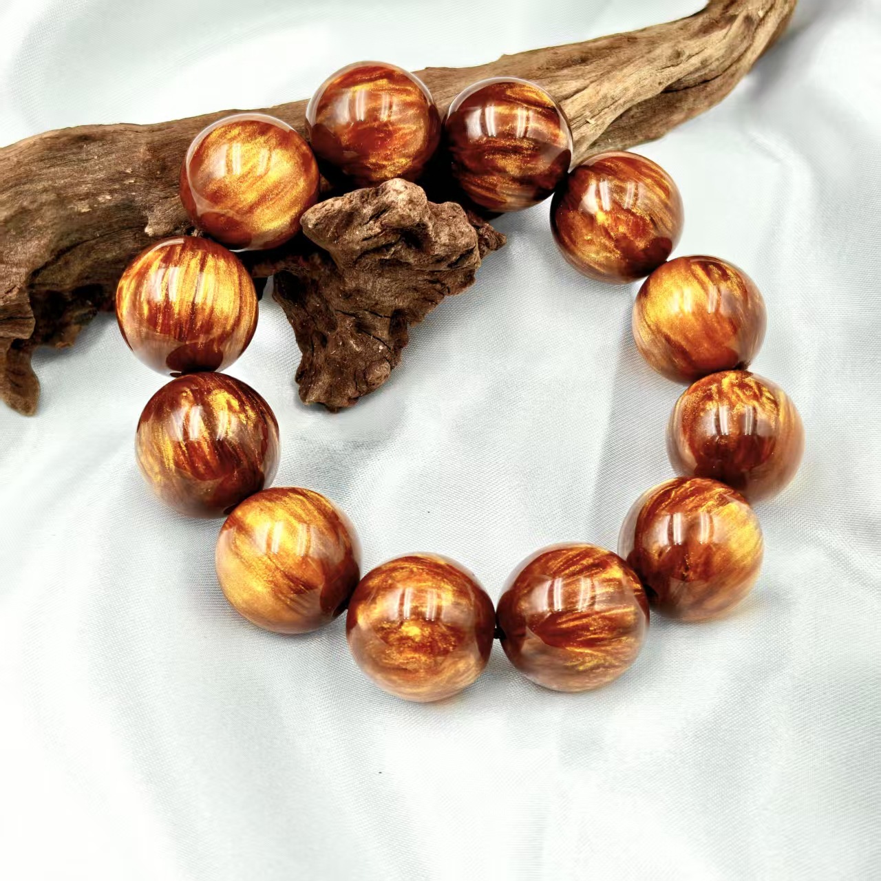 Natural Golden Silk Sea Willow Bracelet Men's Plate Play Buddha String Boutique Black Coral Collection Grade Blood Willow 108 Wen Play Couple's