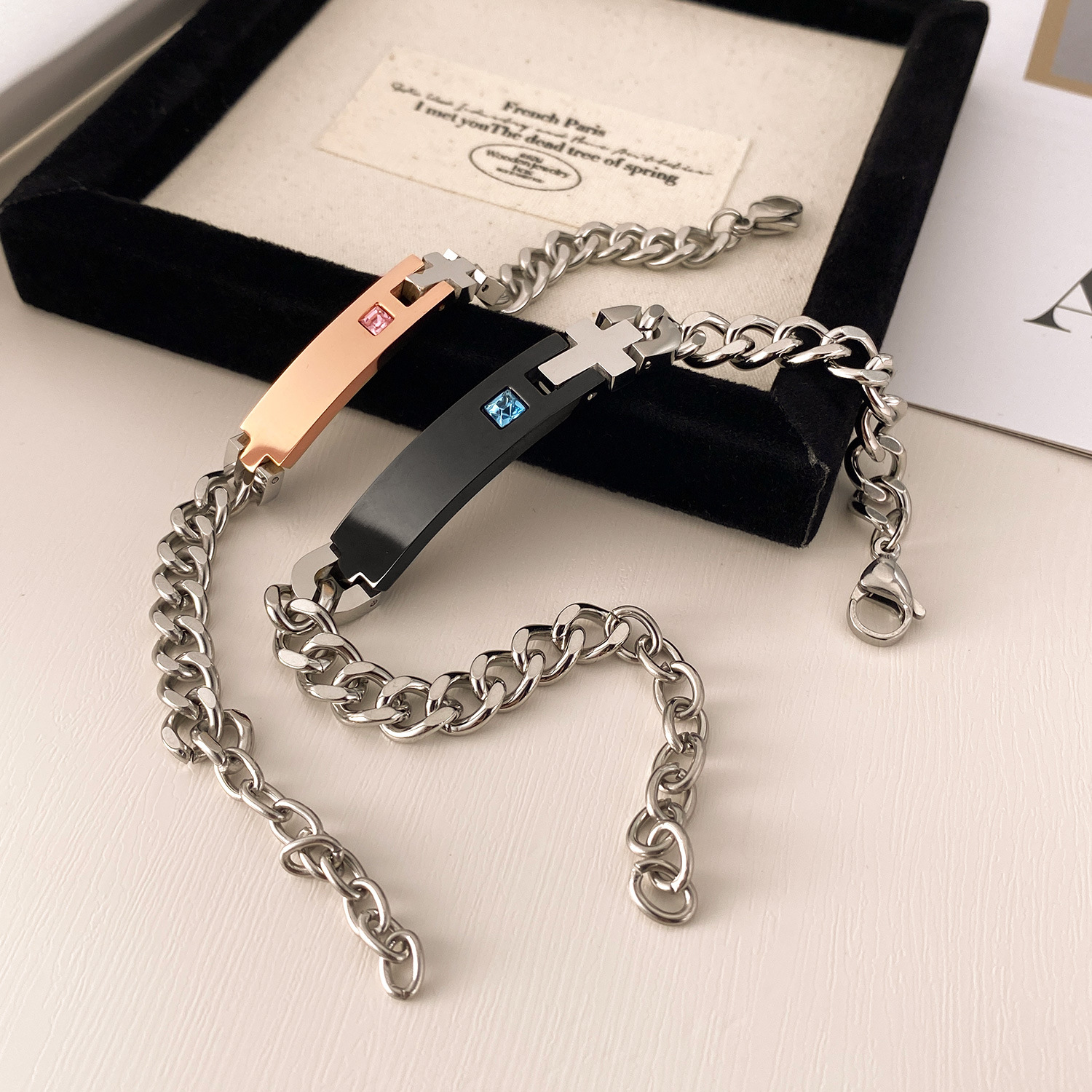 Hot Girl Cross Titanium Steel Bracelet Trendy Men's Trendy Women's Trendy Crow Design High-grade Cold Style Mori Style Bracelet