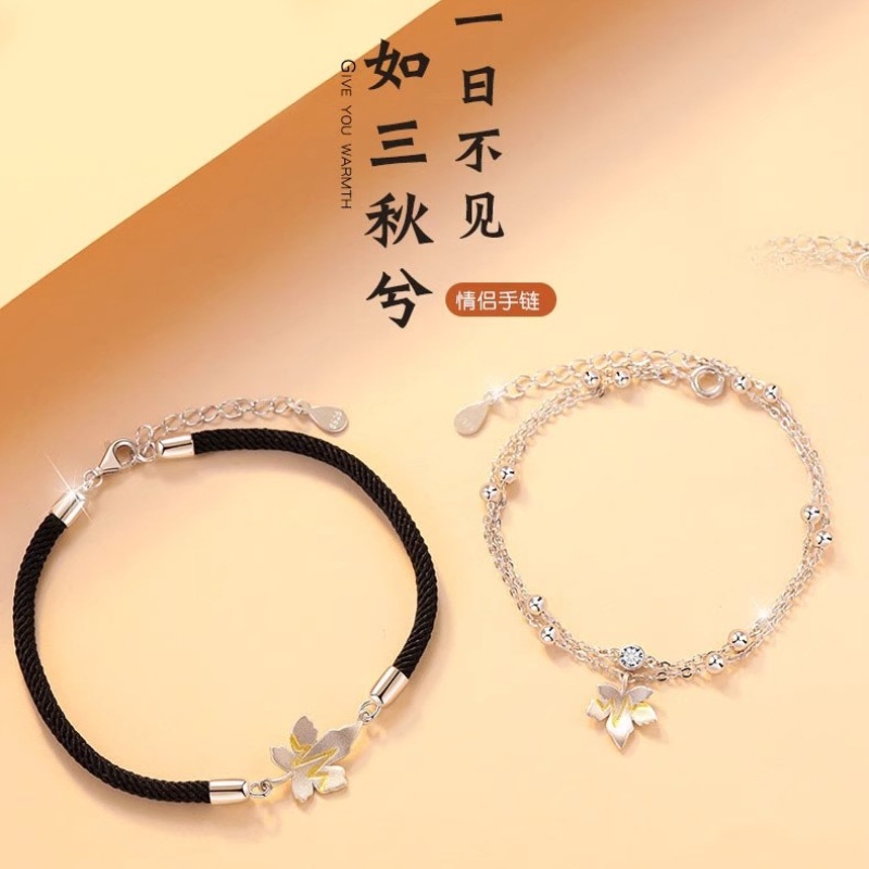For example, the third autumn couple bracelet 2024 new niche light luxury high-end all-match maple leaf hand rope gift for girlfriend