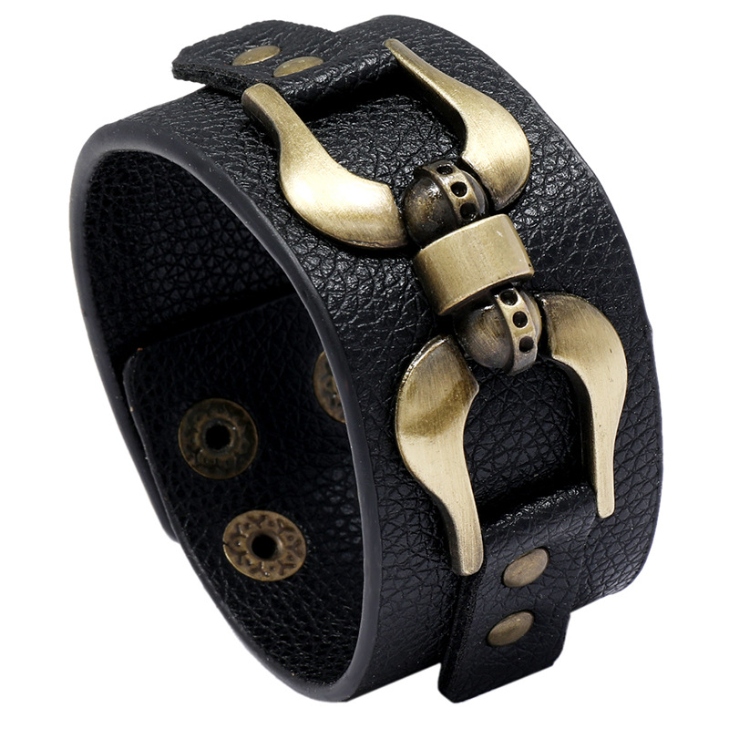 European and American new fashion jewelry simple punk black PU leather bracelet personality Joker trendy men's accessories wholesale