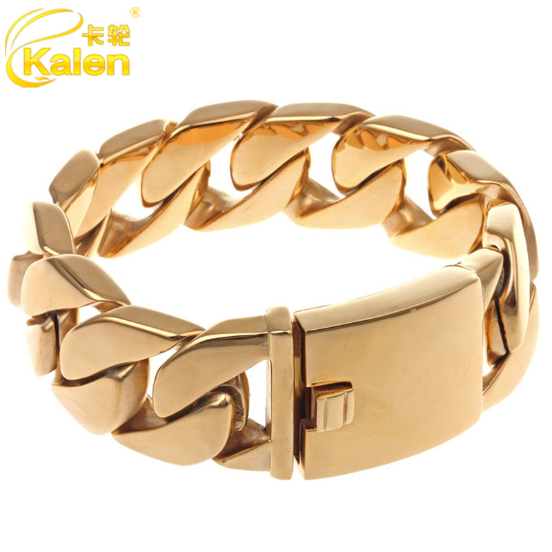 Card Wheel Jewelry European and American Stainless Steel Men's Cuban Thick Bracelet Hip Hop Trendy Men's Electroplated 18k Gold Titanium Steel Bracelet