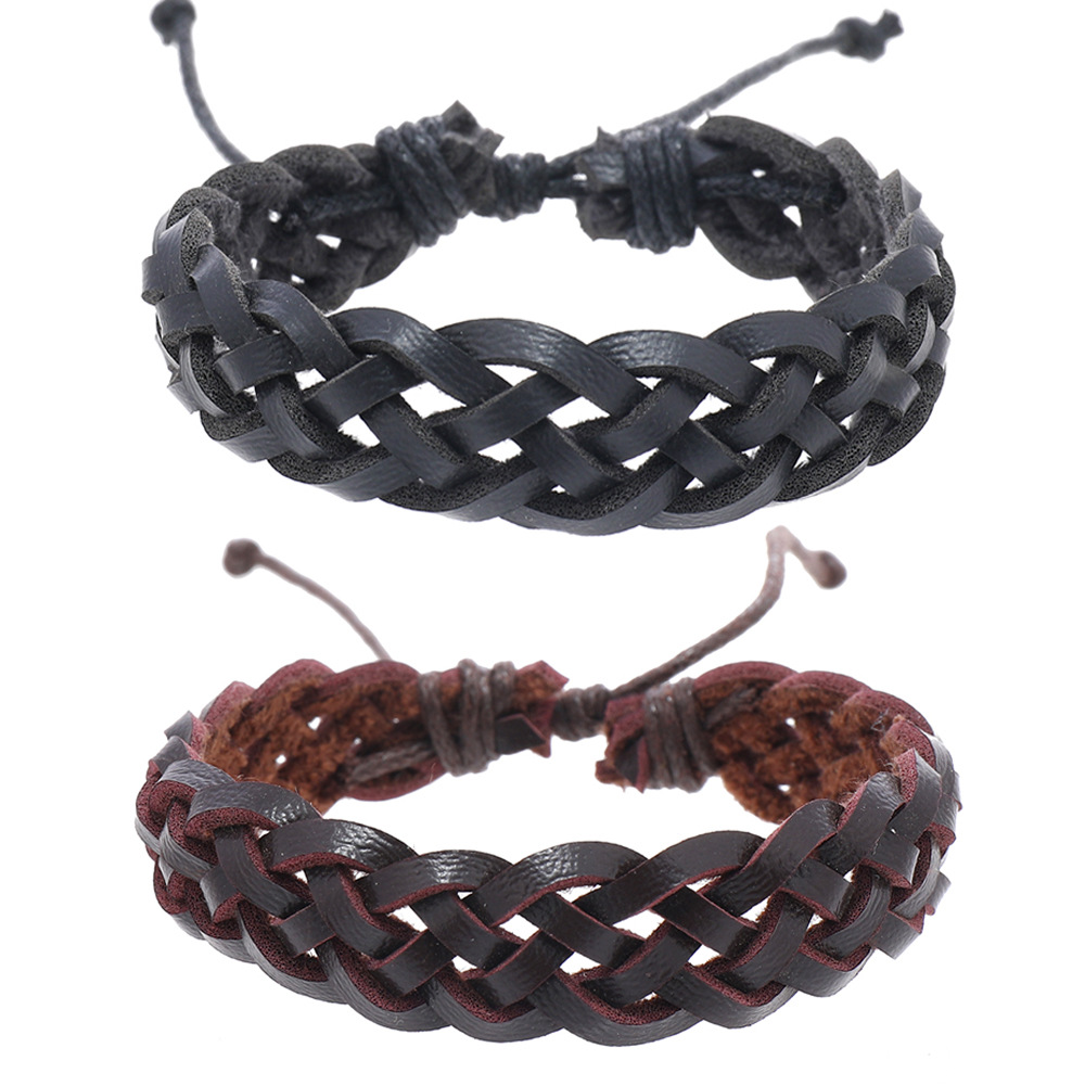 Foreign Trade Hot-Selling Men's Retro Leather Bracelets Cross-Border Leather Jewelry Hand-Woven Bracelets Hand Rope Manufacturer Wholesale