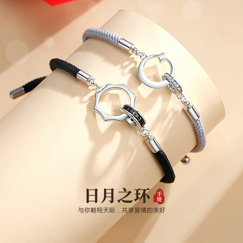 Twilight Sun Moon Couple Bracelet for Men and Women A Small Pair of Push-Pull Bracelet with Diamond Mobius Double Ring Handrope