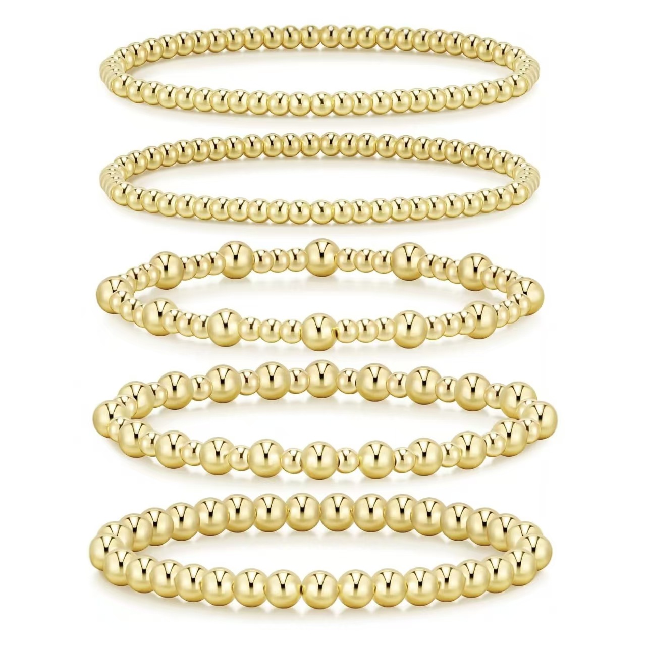 European and American Cross-Border Amazon Popular Gold Beads Multi-Layered Fashionable Simple Bracelet Set Ccb Beaded Bracelet for Women