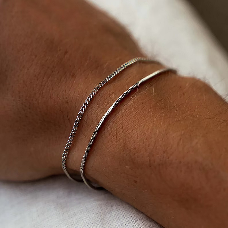 European and American fashion jewelry personality cool fashion men's Cuban chain double men's bracelet simple bracelet wholesale