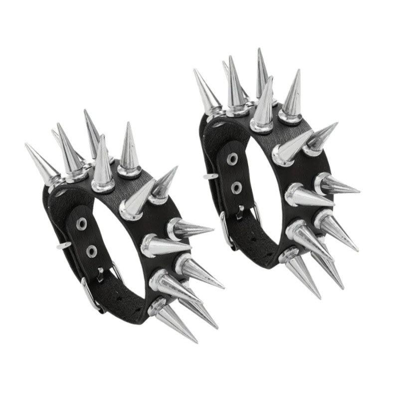 European and American Cross-Border Hot Selling Punk Double Row Pointed Rivet Leather Bracelet Personalized Trendy Couple Bracelet Men's Wristband