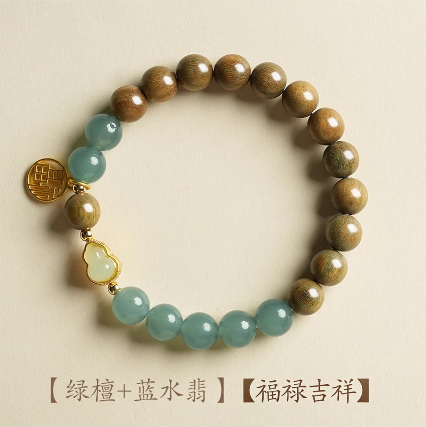 Natural Old Green Sandalwood Bracelets for Men and Women, Jade Gold Silk Sandalwood Wooden Running Beads Bracelets, Submersible Grade Buddhist Beads