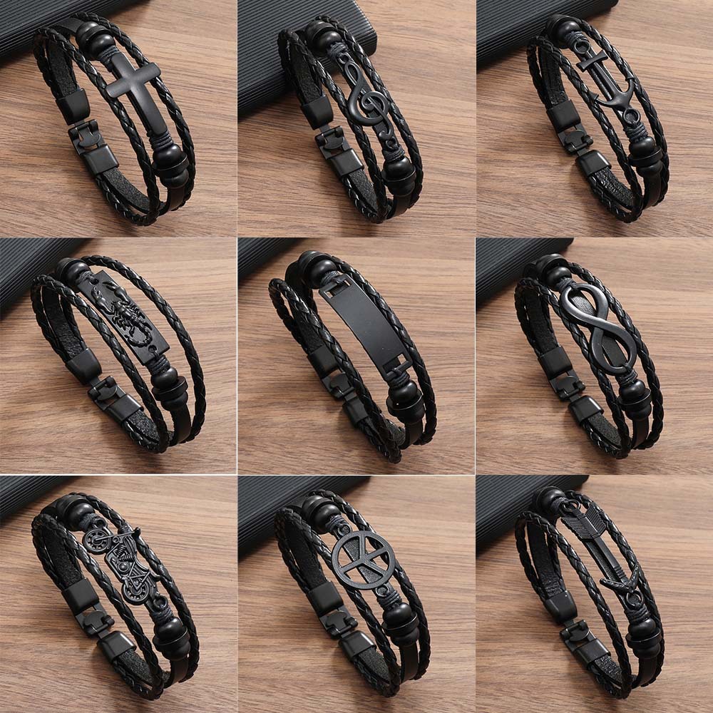 European and American retro multi-layer woven winding black cowhide bracelet popular simple men's accessories manufacturers supply