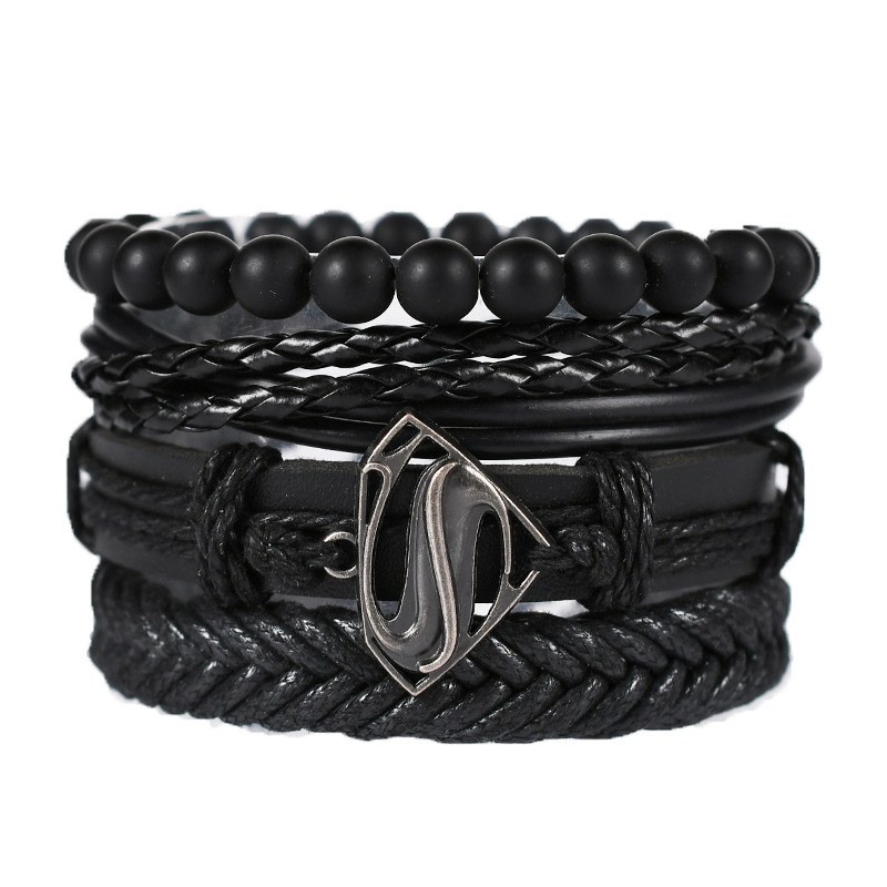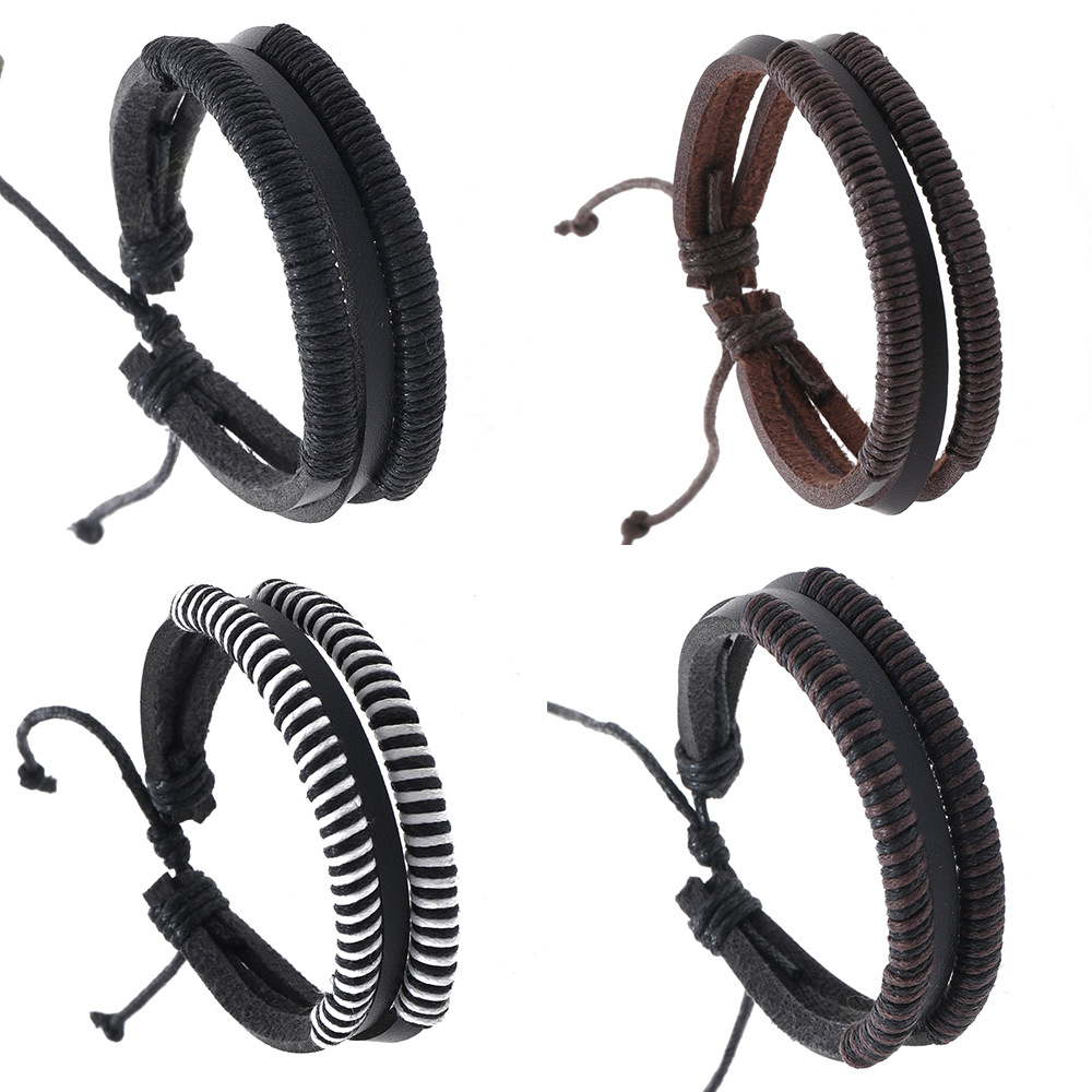 Cross-Border Popular Men's Suit Bracelet Cowhide Braided Bracelet Handmade Hot-Selling Retro European and American Versatile Multi-Layer