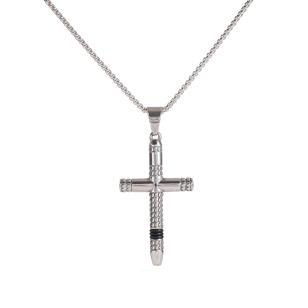 Cross-Border European and American Hot-Selling Polka Dot Prayer Necklace Accessories Retro Cross Titanium Steel Pendant Men's Personalized Clavicle Chain