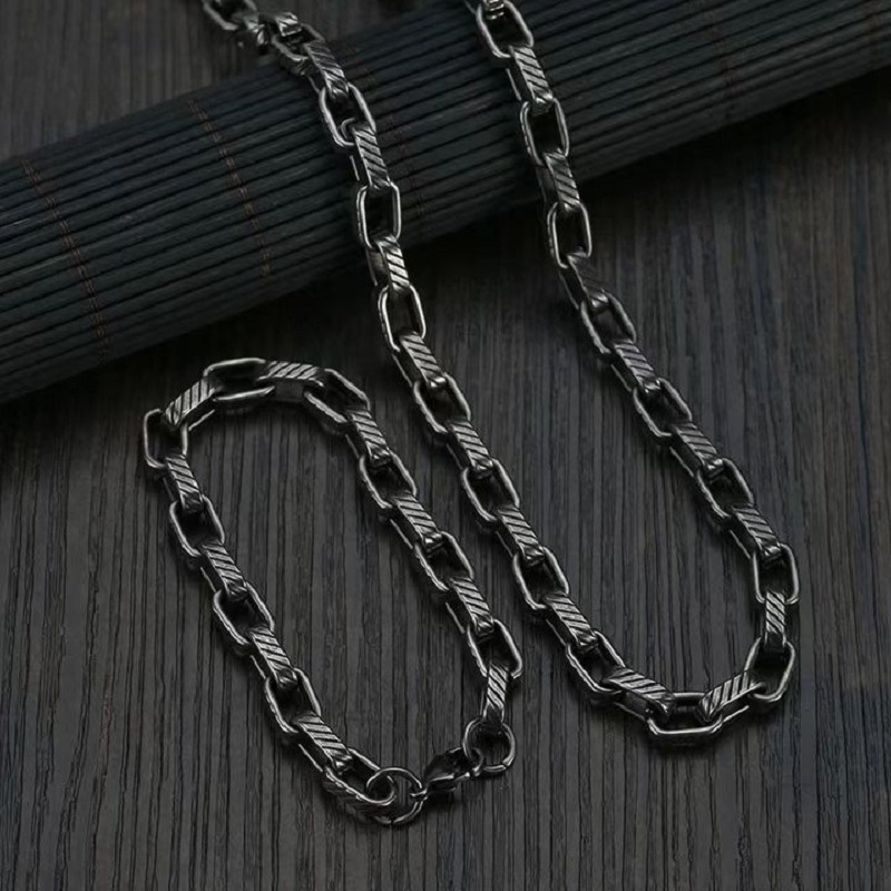 Stainless Steel Diagonal U-Shaped Buckle Square Chain for Men and Women, Vintage Distressed Motorcycle Style, Non-Fading Titanium Steel Accessories, Retro Style