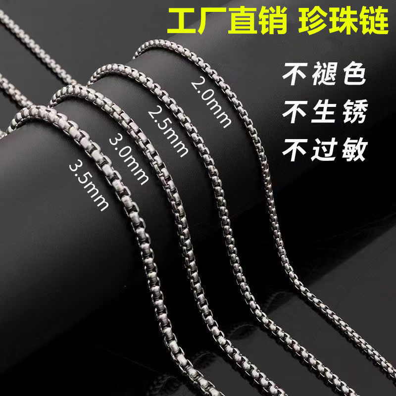 Factory Direct Sales Stainless Steel Square Pearl Necklace Titanium Steel Jewelry with Chain Thick Chain DIY Accessories Men's Snake Bone Chain