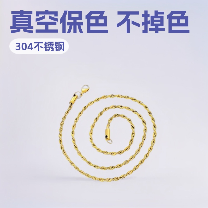 Stainless Steel Twist Chain Vacuum Color-Preserving Electroplating Non-Fading Gold Chain Titanium Steel Hip-Hop Men's Necklace Chain