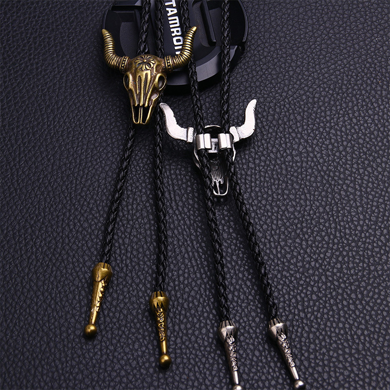 European and American long leather cow head necklace jewelry wholesale fashion new factory direct retro men's leather necklace