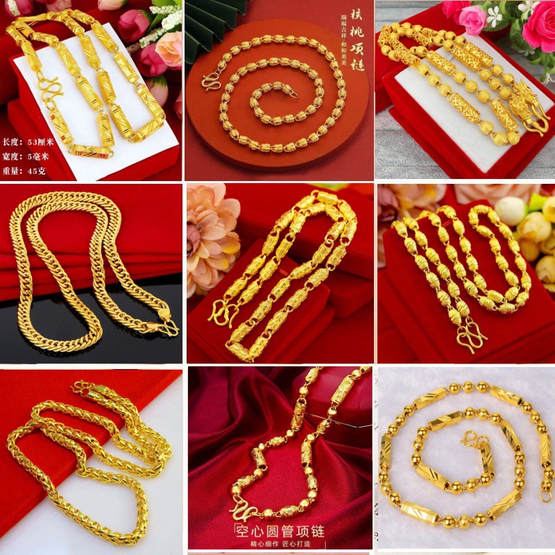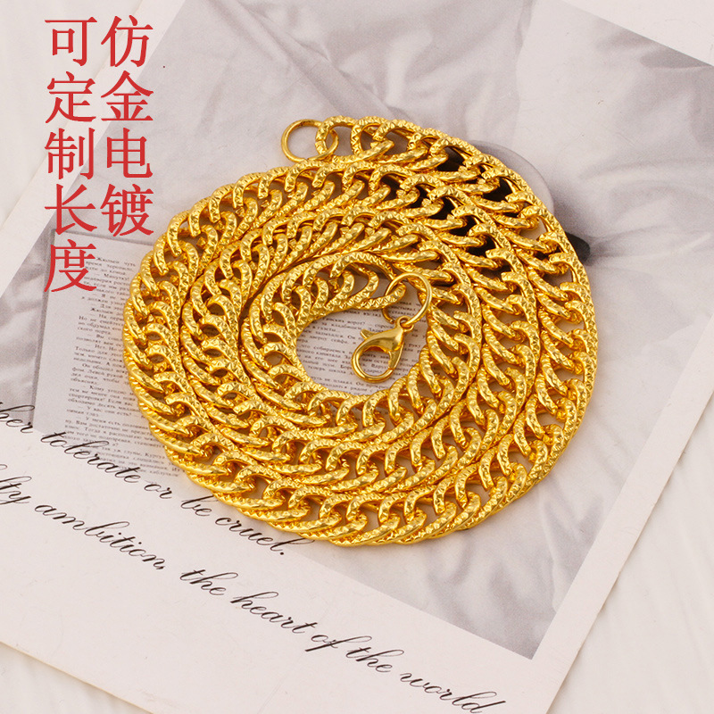 Cross-Border Vietnamese Sand Gold Boss Chain Glossy Double Buckle Men's Necklace Copper Alloy Necklace Street Stall Live Supply Wholesale