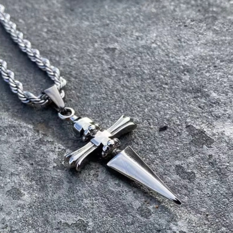 Cross-Border Popular Stainless Steel Cross Dagger Pendant Necklace Men's Hip-Hop Stylish Trendy Jewelry Stainless Steel
