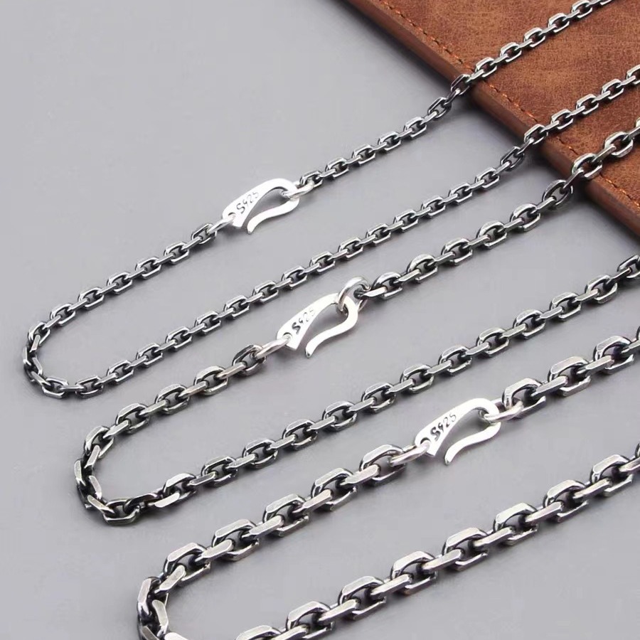 S925 all-in-one sterling silver chain necklace Thai silver retro trendy men's clavicle chain all-match sweater chain for men and women 3mm