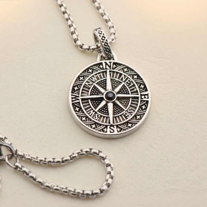 Temu Hot-Selling Foreign Trade Jewelry, Personalized Retro Nordic Viking Round Pendant Jewelry, Men's Round Fashion Necklace