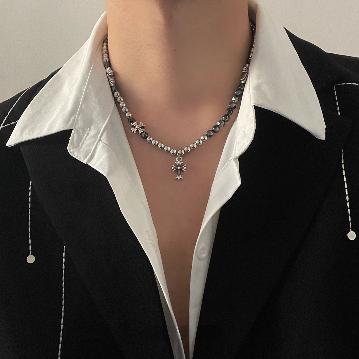 Cruciferous Beaded Collarbone Chain Cold Style Hip Hop Boys Necklace Female Niche Design Sense Sweater Sweater Chain