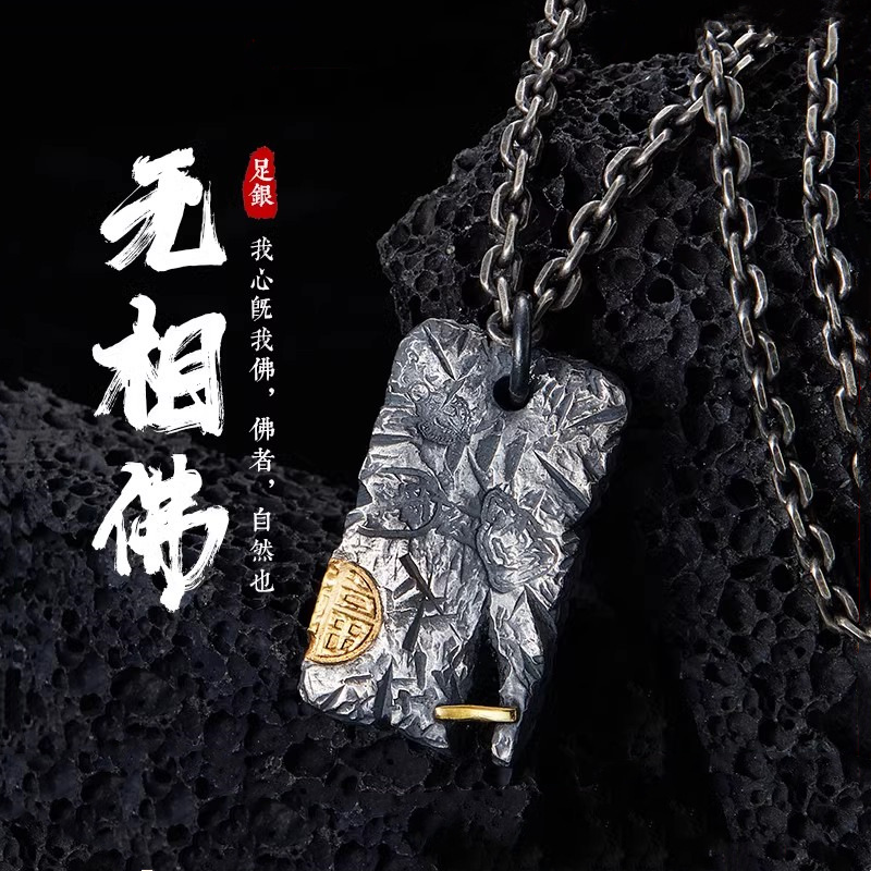 Original design "no phase" necklace pendant men's personality retro sterling silver handmade wrong gold pendant niche jewelry