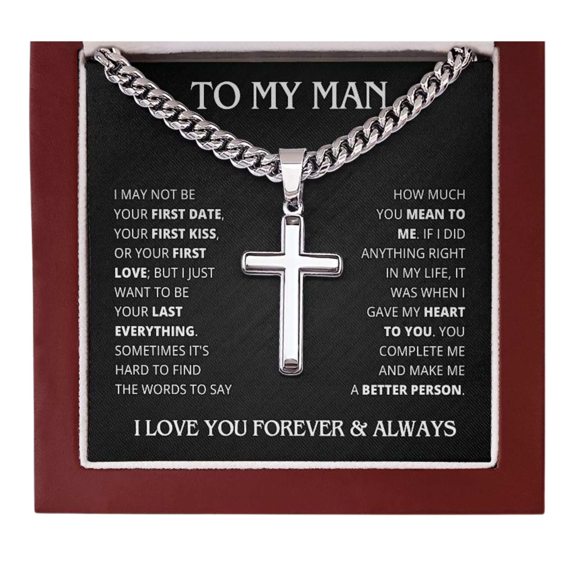 Cross-Border Amazon New Stainless Steel "To My Man" Cross Pendant Men's Necklace Father's Day Gift