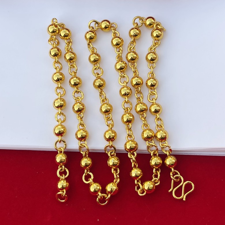 Solid Gold Round Bead Necklace Gold Plated Men's Necklace Simple Atmospheric Buddha Beads Gold Chain Live Couple Gift