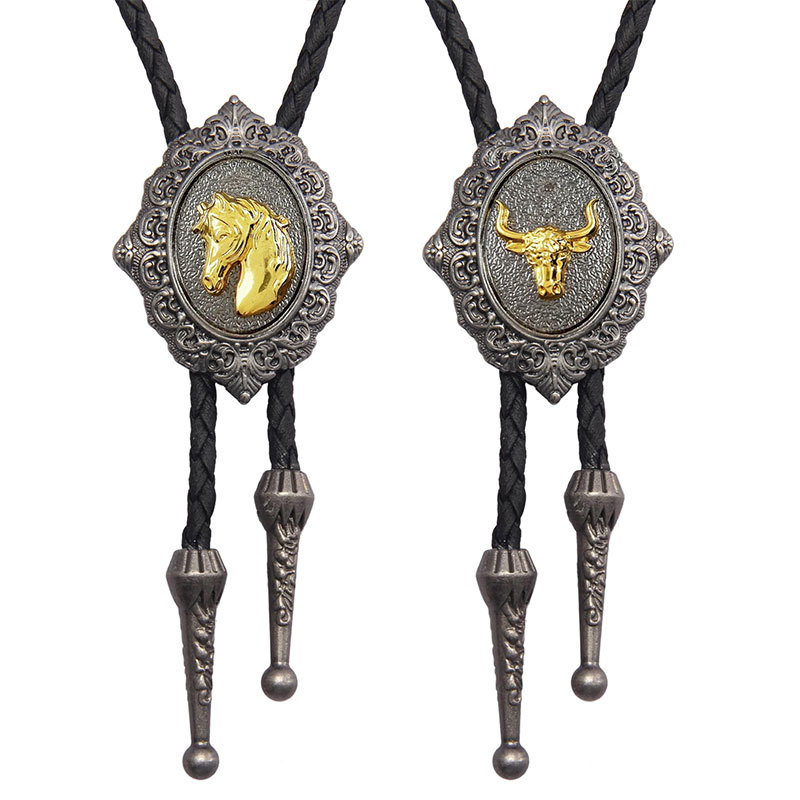 European and American Cross-Border Medal Taurus Horse Polo Tie Pendant Necklace Men's Retro Western Cowboy Style Long Sweater Chain