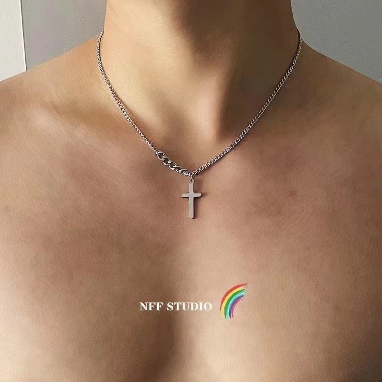 NFF European and American Ins Style Short Cross Titanium Steel Necklace Men's Internet Celebrity Hip-Hop Simple Clavicle Chain Elegant All-Match Trendy
