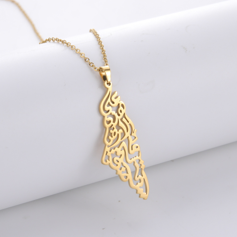Cross-border new hot fashion stainless steel hollow Arab Palestine map pendant men's and women's necklace
