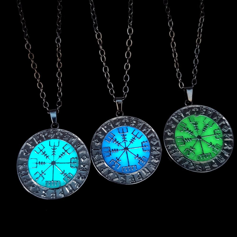 Foreign trade accessories wholesale Viking vintage Nordic Luna Wen Odin logo pirate compass luminous men's necklace