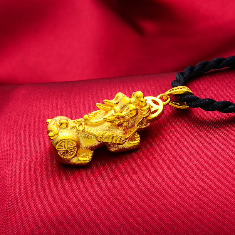Brass Gold Plated Solid Pixiu Pendant Vietnam Sand Gold Lucky Gold Necklace Black Rope Men's Jewelry Pixiu Pendant
