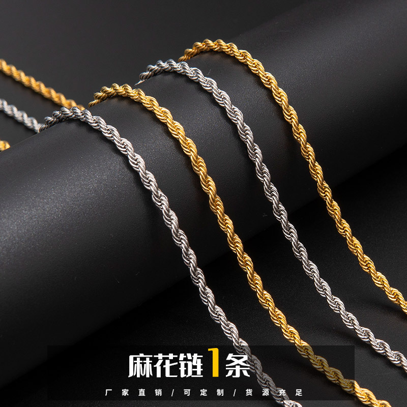3mm twist chain European and American personality men's necklace hip hop trend pendant lanyard chain necklace foreign trade twist rope chain