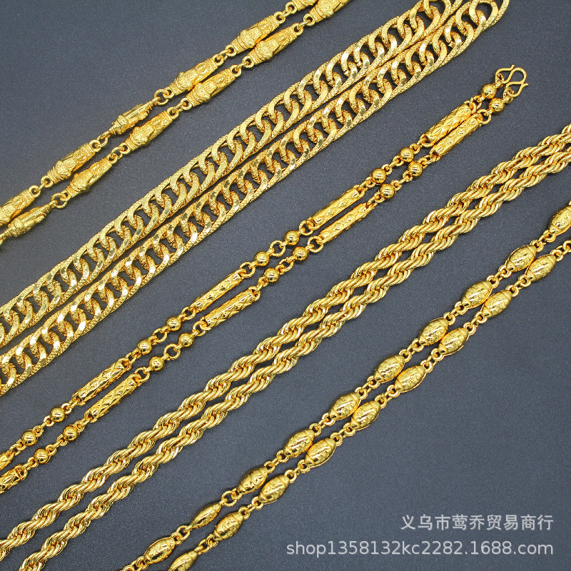 24K gold-plated men's domineering necklace Vietnam sand gold chain fashion small twist W buckle simulation gold chain a generation of hair