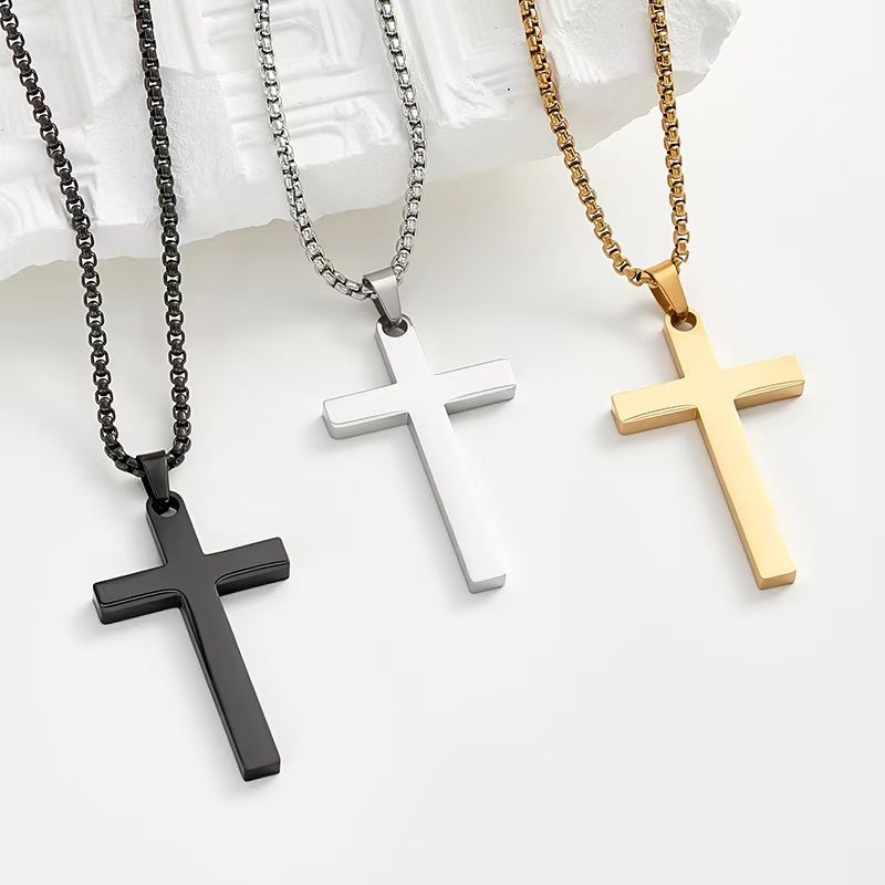 Cross-Border Amazon Cross Necklace Does Not Fade Men's Simple Niche Personalized Sweater Chain Cross Necklace Titanium Steel