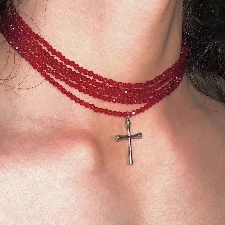 European and American Retro Cross Multi-Layered Beaded Chain for Women and Men Subculture Jewelry Y2K Design Clavicle Chain New