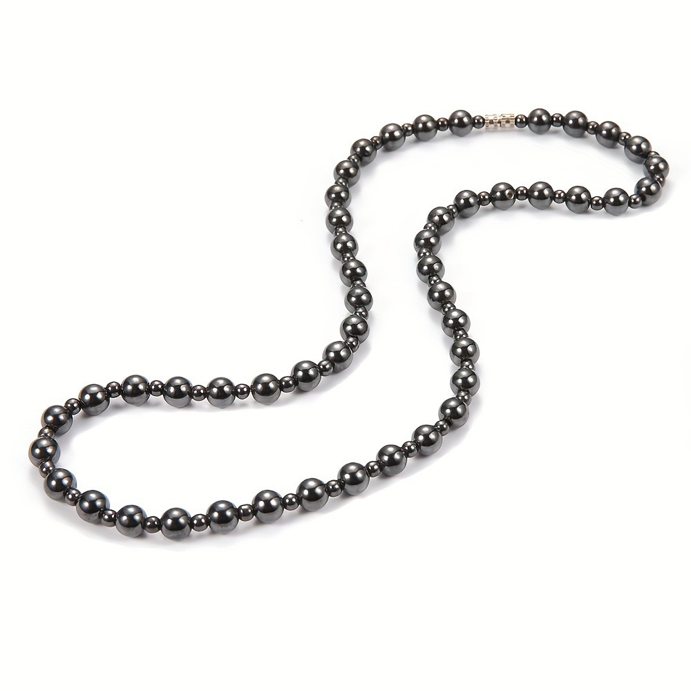European and American Men's Necklace Magnetic Black Hematite 4mm or 8mm Hip-Hop Cuban Beaded Ball Necklace Cross-Border Batch