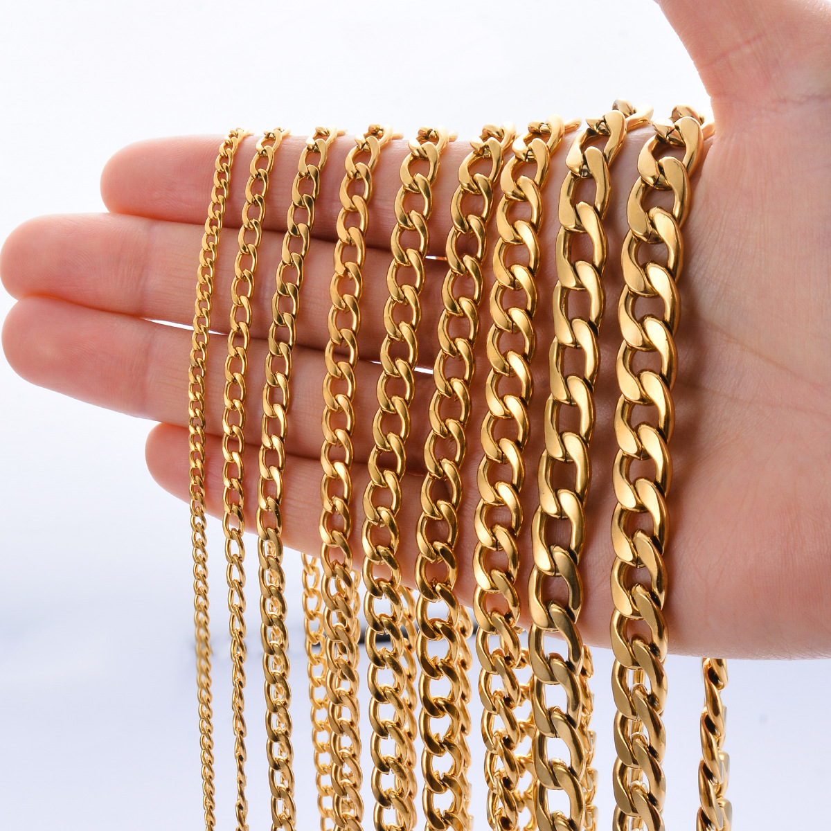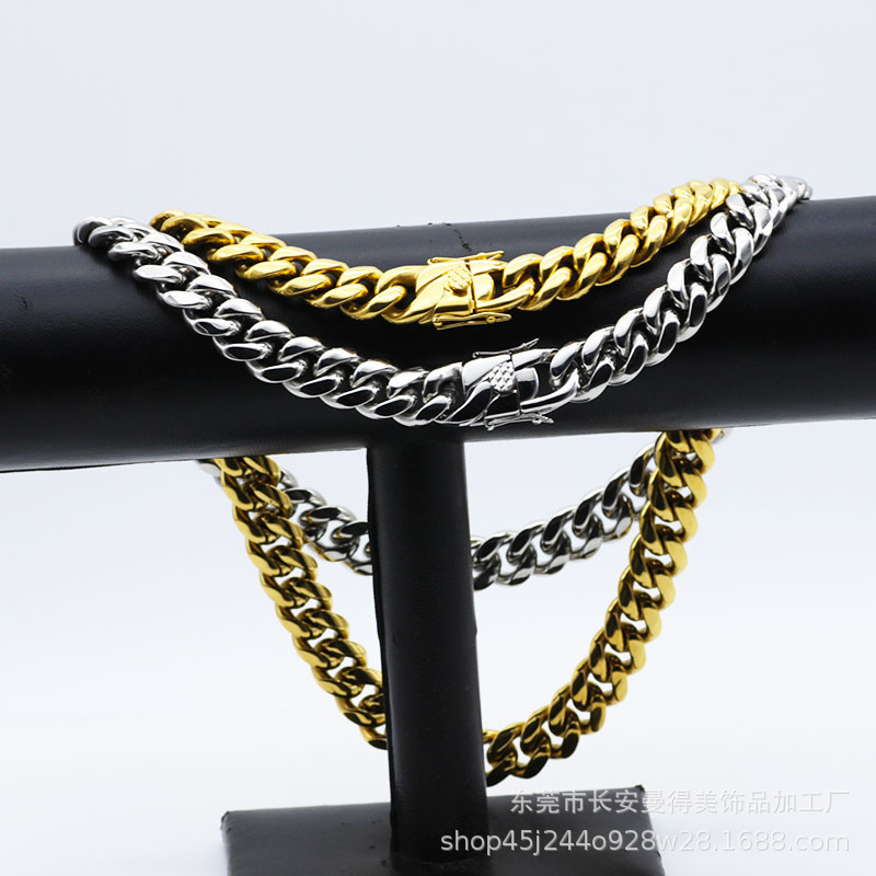 Cross Border 1:1NK Necklace Titanium Steel Gold Men Hip Hop Cuban Chain Stainless Steel Necklace Figaro Chain Accessories
