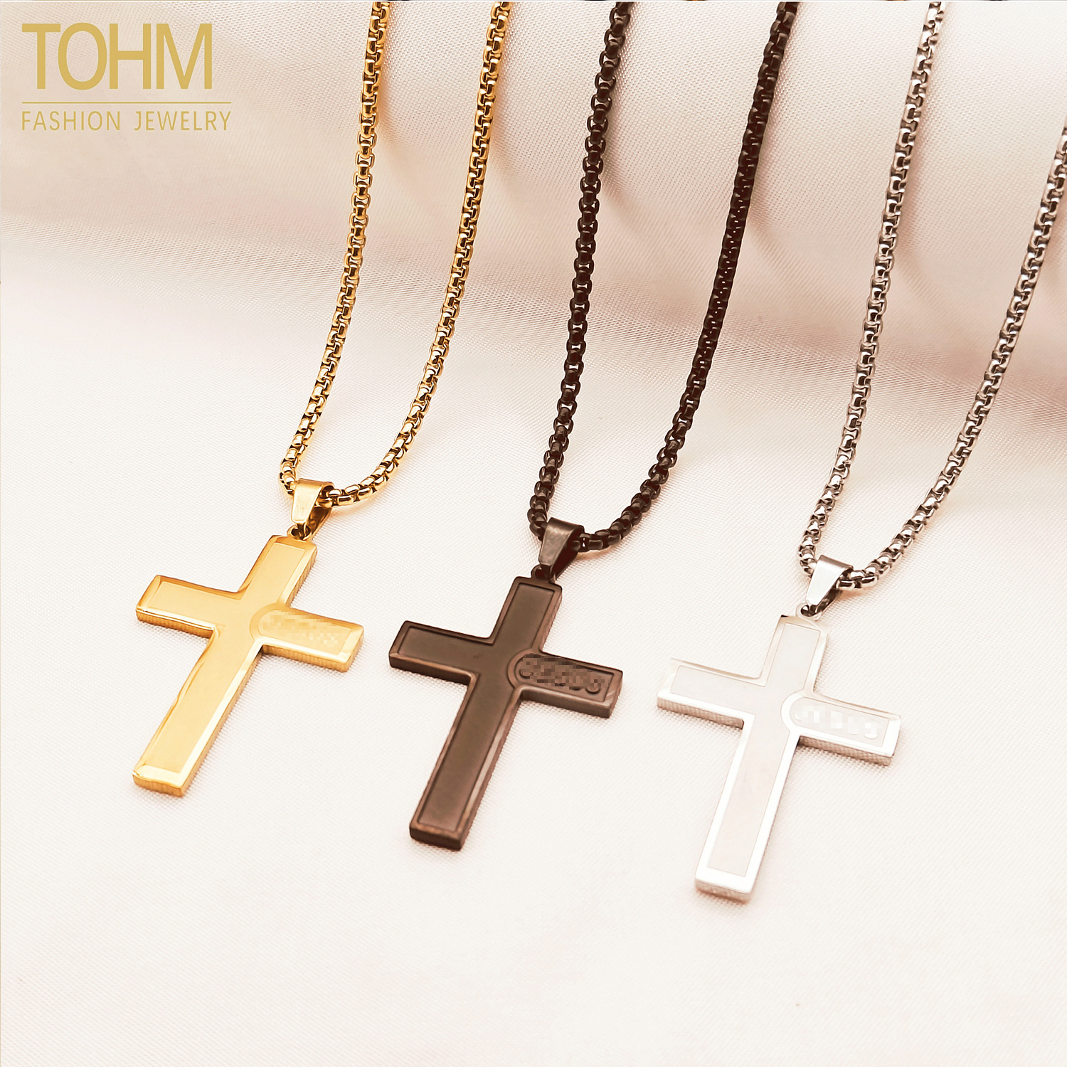 European and American Men's Stainless Steel Cross Necklace Pendant, Personalized and Versatile Men's Niche Design, Trendy Titanium Steel Necklace