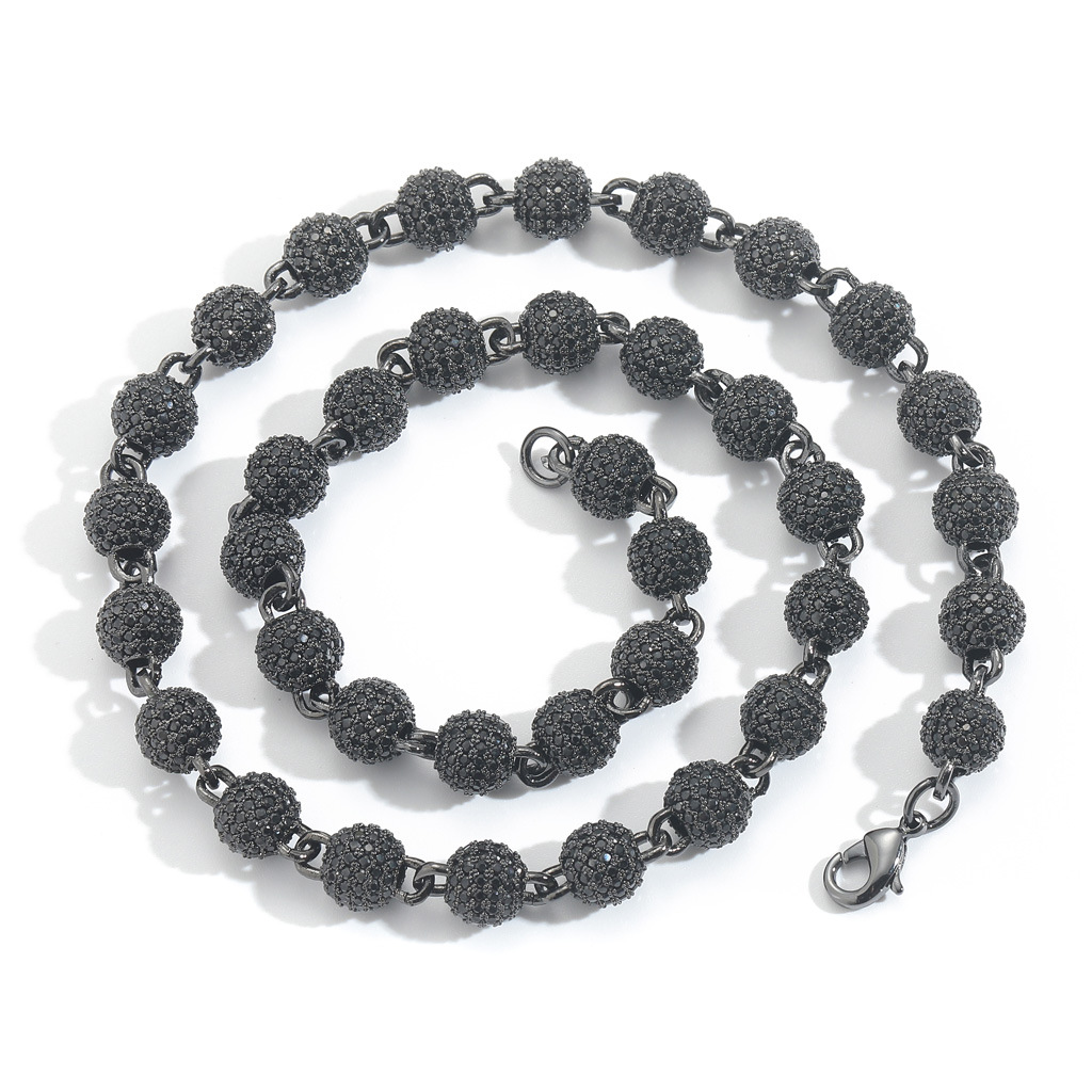 New Product 8mm Black Zircon Round Bead Necklace Buddha Bead Necklace Clavicle Chain Full of Zircon Men's and Women's Personalized Hip-Hop Necklace