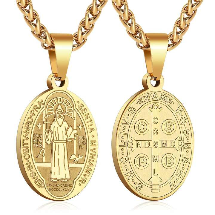 Cross-border Amazon Stainless Steel Priest Benedict Oval Brand Pendant Vintage Jewelry Men's Medal Necklace Wholesale Women