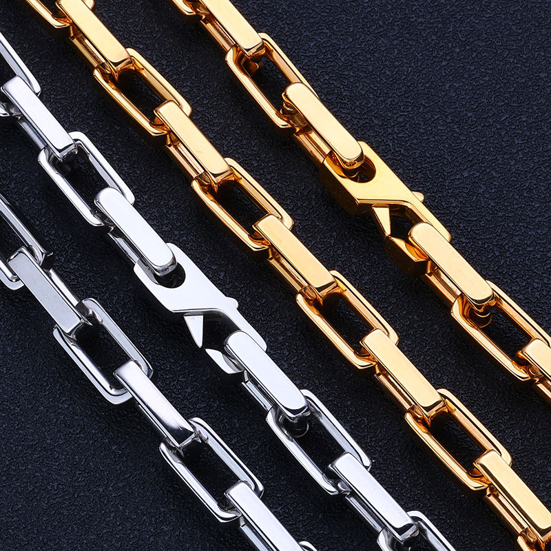 Necklace manufacturer in stock men's hip hop niche cold style simple elegant stainless steel encrypted square flat Cuban chain