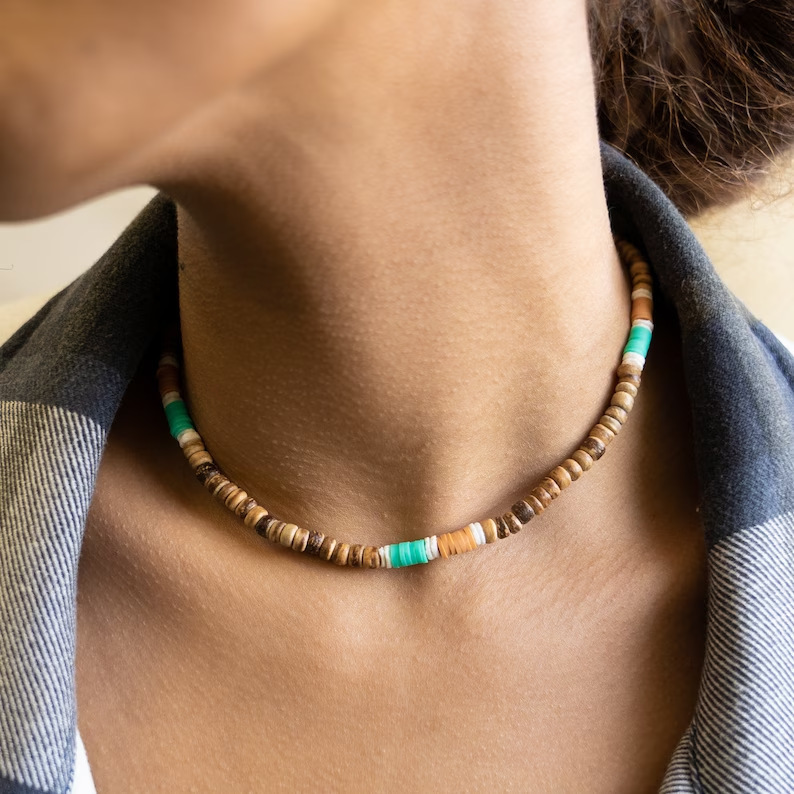Fashion New Necklace European and American Unique Bohemian Necklace Turquoise Gravel Coconut Shell Men's Surf Punk Necklace