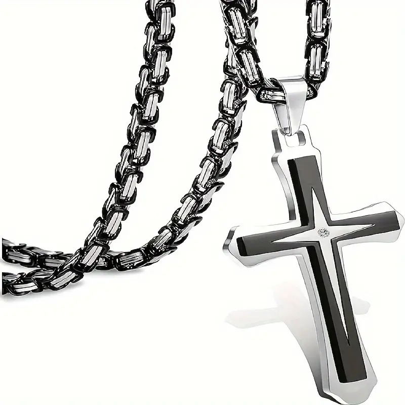 European and American Jewelry Double-Layer Two-Tone Cross Necklace Factory Direct Sales E-Commerce New European and American Stainless Steel Men's Accessories