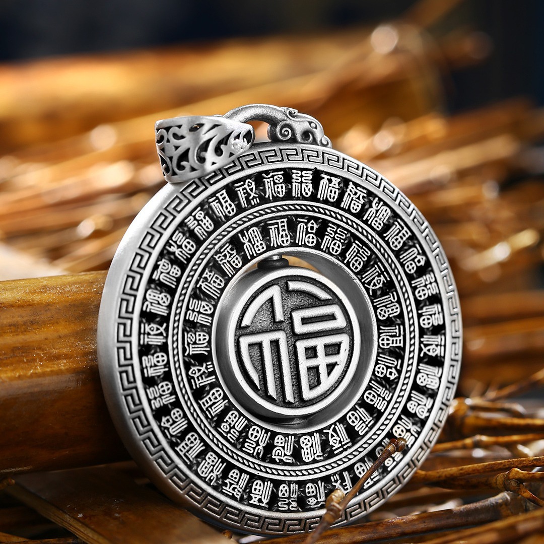 925 sterling silver Wanfu rotatable safety buckle men's pendant necklace pendant high-end pendant necklace personalized jewelry
